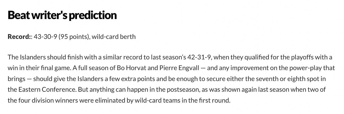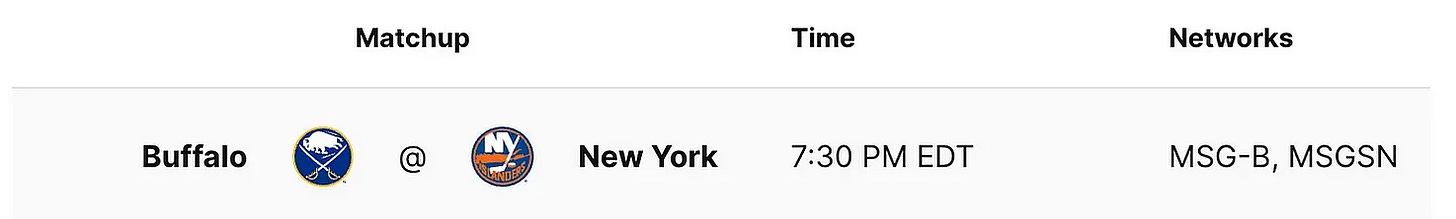 ⏭ NEXT UP: It’s the regular season! The Islanders open up the 2023-24 campaign at home against Tage Thompson and the Buffalo Sabres. Face-off from UBS Arena in Elmont is at 7:30 PM EDT.
