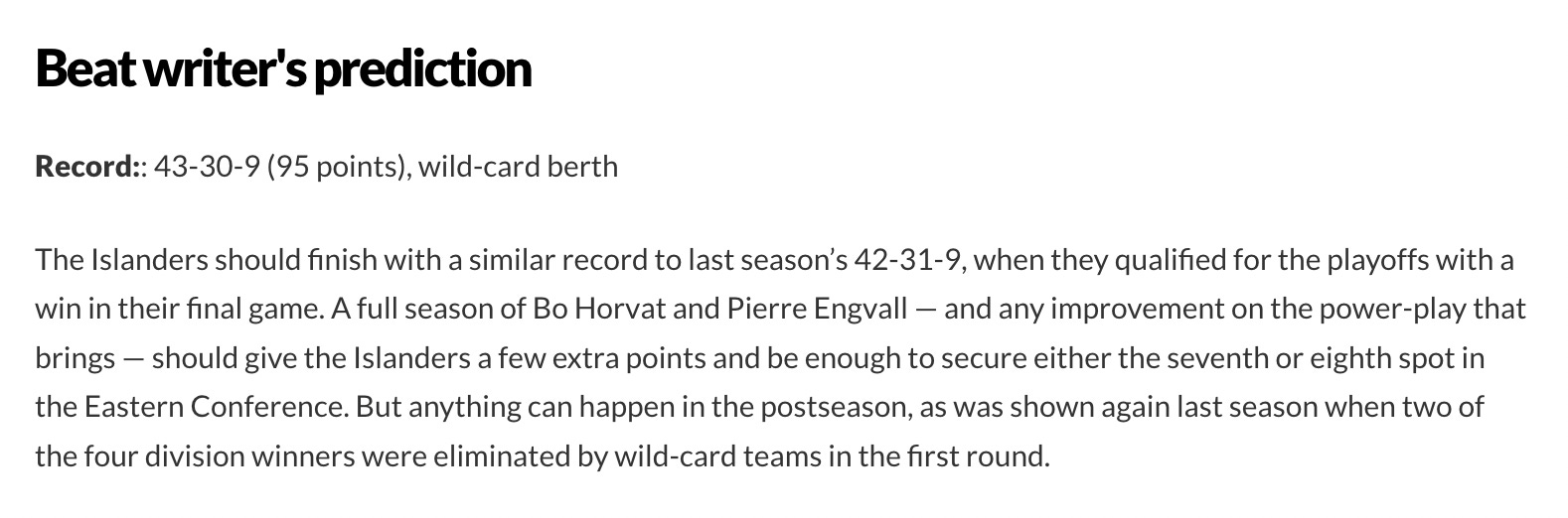 “You can view it as the same group, or you can view it as we had two pretty key players that didn’t get to play a full year, and then we had our All-Star [Mathew Barzal] being out for the long stretch coming into playoffs,” defenseman Scott Mayfield said. “I don’t really view it as the exact same team,” Mayfield continued. “I like the makeup of the team. We’ve had some success, but we’ve got to make sure we find that next level.”