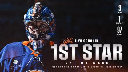 This season, Sorokin is 10-8-2 in 20 starts with a .912 save percentage and 2.47 GAA, one of only two NHL goalies with at least three shutouts. Since Nov. 1, he owns a 7-4-1 record with a .934 save percentage, 1.84 GAA, and three shutouts.