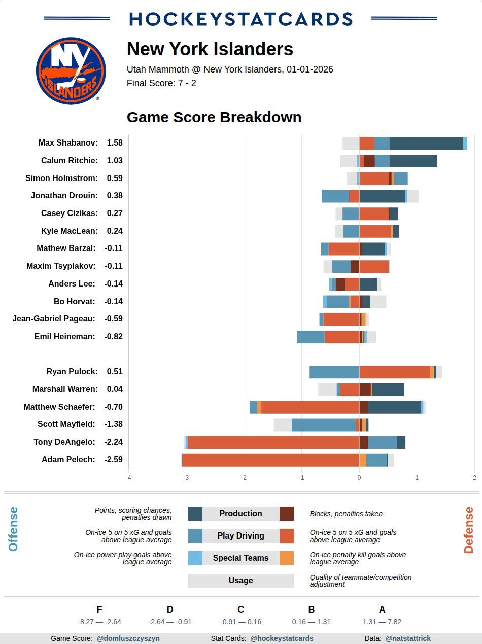 🔗 Islanders start fast, then are outclassed by Mammoth by Andrew Gross, Newsday “The Islanders can only hope the rest of 2026 goes way better. And their resolution must be to score more goals. Sloppy, uninspired play in the final 50 minutes resulted in a 7-2 loss to Utah in a New Year’s Day matinee at sold-out UBS Arena. So the Islanders reached the season’s midpoint with their largest margin of defeat as they failed to score more than two goals for the eighth straight game.”