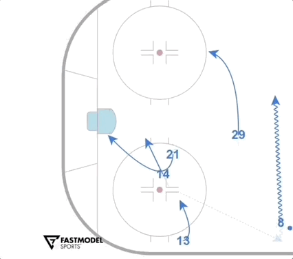 ◾️ This interactive diagram from FastModel Sports shows how the Islanders scored on the power play on Tuesday night. Noah Dobson drags aggressively to the middle as the Isles hustle to get into a 1-3-1 setup. Dobson sets up Barzal, who had gone into his shooting position for the one-timer. Pretty cool.