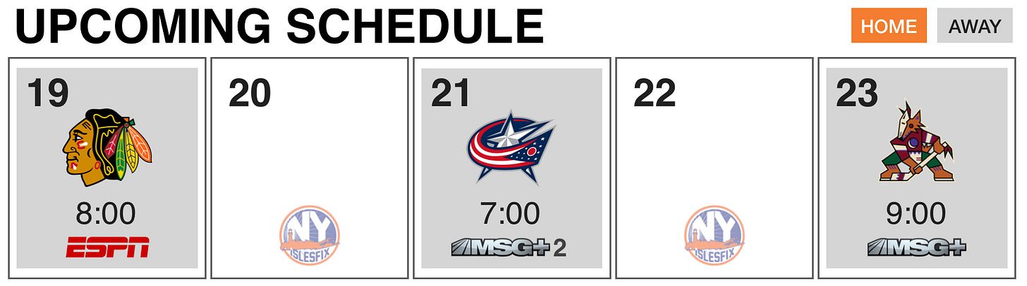 One would figure there will be a higher sense of urgency for the Hawks in their home opener, so the Islanders will need to return to the form we’re used to seeing after being outscored 11-4 in their first two games.